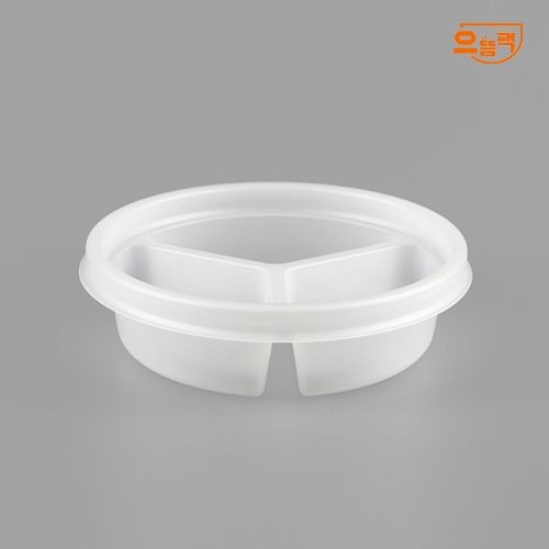 | 상품명 | 원형죽용기 3칸 600개 세트 (반투명/PP/AJ) |